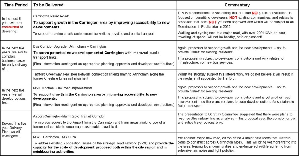 In reality, the CRR is the ONLY commitment within the Delivery Plan for the huge overdevelopment planned for the New Carrington Allocation area. With the GM Transport Delivery Plan confirming that