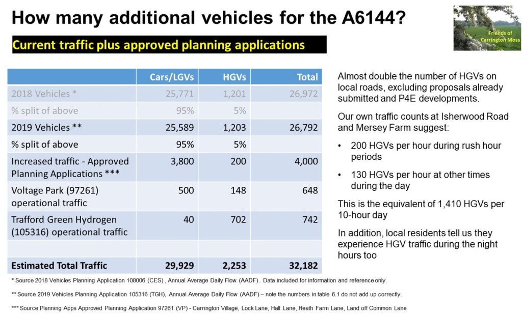 The current conditions (set out on page 14) focus on Carrington and Partington, without referencing the issues related to Sale West or Warburton, which will be impacted significantly by this “strategy” and, as mentioned above, totally omits any reference to the huge number of HGV movements in the area.