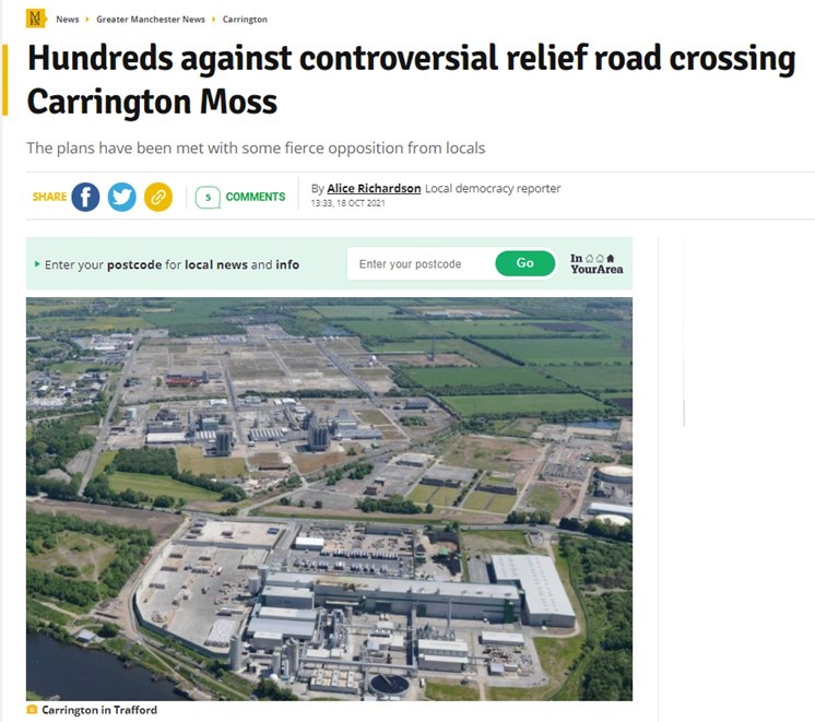On 3rd April 2024, the Manchester Evening News featured an article about the Scrutiny Committee meeting (see our Carrington Link Road page for more information).