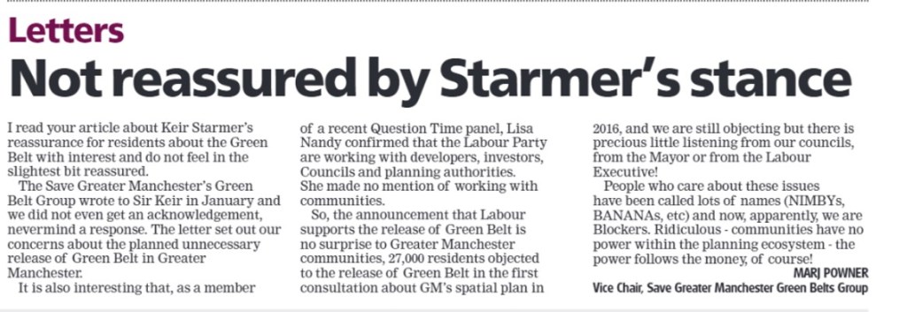 On 8th May 2024, we featured in another Manchester Evening News article, this time about the legal action being taken to challenge the Places for Everyone Plan